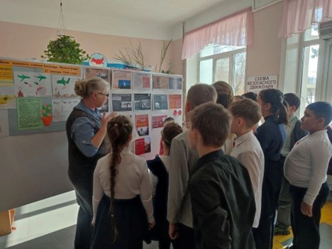 Ребята-старшеклассники оформили стенд, посвященный Сталинградской битве, а учащиеся 7 «А» класса вместе со своим классным руководителем, С.А. Егоровой, подготовили сообщение для учащихся начальной школы.