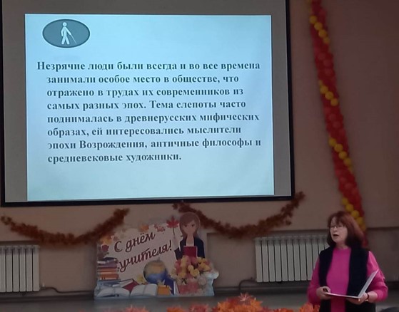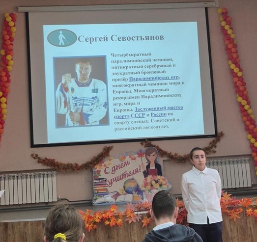 Учащиеся рассказали о незрячих людях, добившихся международного признания, заявивших о себе в науке, спорте, искусстве и литературе. Эти люди своей жизнью доказали, что им подвластно все: и покорение вершин, и музыкальный Олимп, и научные открытия, и многое другое.