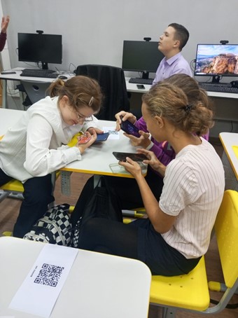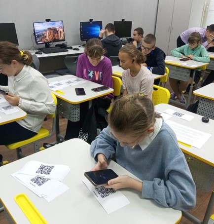 Отдельным пунктом встречи стал разговор о QR-кодах, ребята узнали, как ими пользоваться и даже приняли участие в небольшом квесте по поиску нужной информации через мобильные приложения для считывания QR-кодов.
