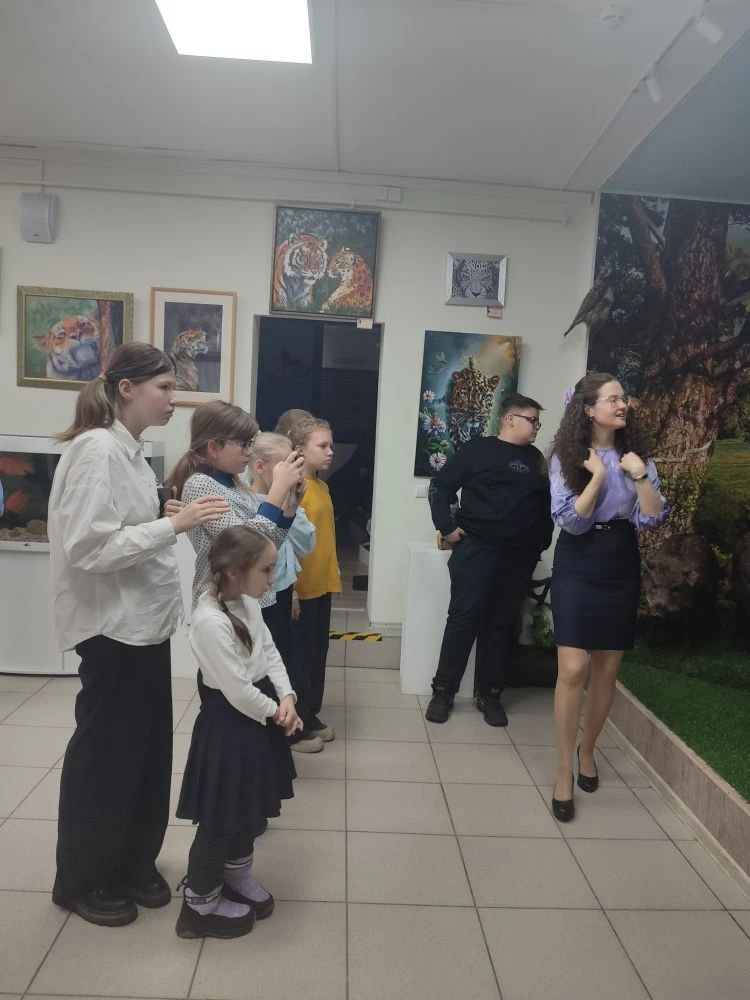 На экспозиции были представлены разнообразные произведения художников с различных регионов России. Ребята смогли насладиться яркими полотнами, на которых были запечатлены грациозные леопарды, амурский тигр, отличающиеся своей выразительной окраской- будь то изысканные пятна или полосы.