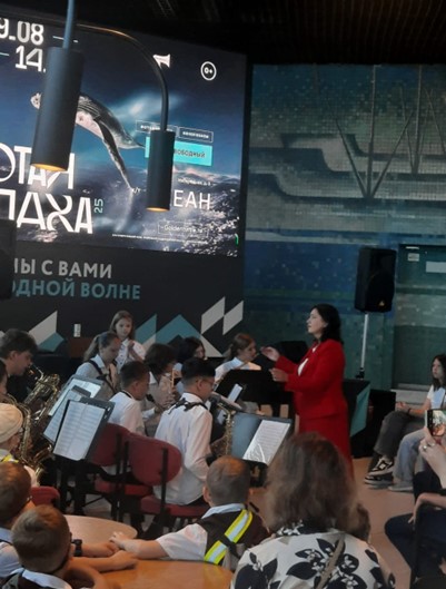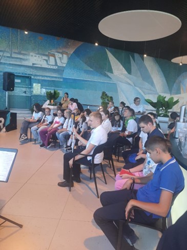 Перед началом экскурсии с ребятами встретился руководитель проекта «Золотая Черепаха» Андрей Сухинин. Он рассказал присутствующим о целях данного проекта, об участии в проекте фотографов из разных стран и о том, почему он лично участвует в эколого-просветительском проекте «Золотая Черепаха». Затем ребята с большим удовольствием прослушали выступление духового оркестра юных музыкантов.
