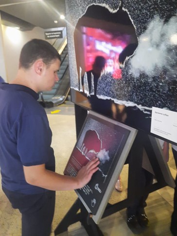Экскурсовод провела всех незрячих к выставке тактильных фотографий, где рассказала о каждой фотографии и об изображенных на них представителях дикой природы. Для желающих индивидуально познакомиться с выставкой тактильных фотографий работал аудиогид, который позволил незрячим более детально познакомиться с представителями фауны Дальнего Востока.