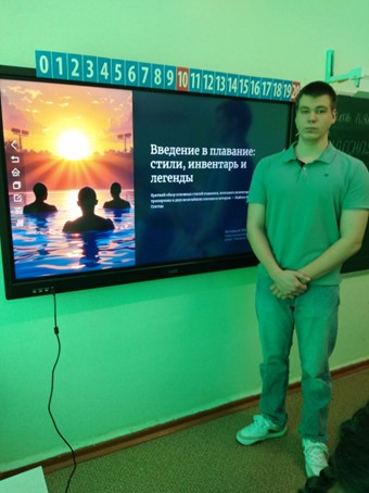 В рамках движения «Орлята России» в соответствии с треком «Спортсмен» во 2 классе состоялась очень интересная и познавательная встреча с Григорием Яровым, артемовским спортсменом по плаванию, который отстаивает честь своего города и края на соревнованиях различного уровня. Григорий рассказал о том, что плаванием он начал заниматься с 6 лет и сегодня он имеет множество наград, полученных за свои спортивные достижения. Он поделился с ребятами своими планами на будущее, с помощью презентации пояснил, что путь спортсмена весьма труден, требует не только физических затрат, но и умения соблюдать правила питания, режим дня, отказ от каких-либо вредных привычек. Ребята с интересом рассматривали множество наград, которые он получил на соревнованиях, задавали вопросы, на которые он отвечал обстоятельно и интересно, рассказывал о своей жизни и своих победах.