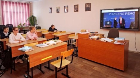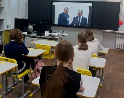 Учащиеся старших классов посмотрели интервью Марии Захаровой, официального представителя МИД России, в котором она рассказала, кто такие дипломаты, как они способствуют поддержанию международных отношений, защищают интересы своей страны и её граждан, а также поддерживают мир, сотрудничество и взаимопонимание между государствами.