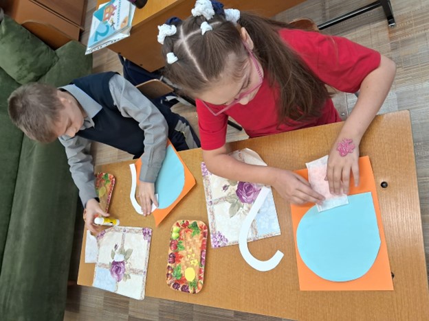 Учащиеся начальной школы и старших классов на мастер классе по изготовлению эмблемы месячника проявили свои художественные способности, упорство и трудолюбие, поэтому и эмблемы получились очень красочные.