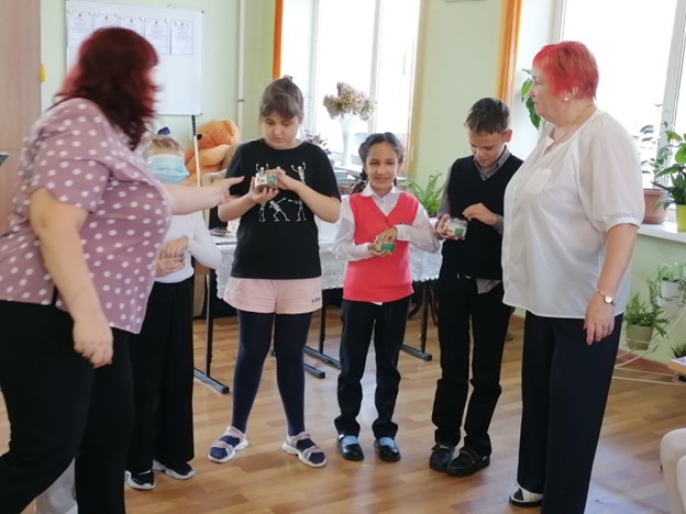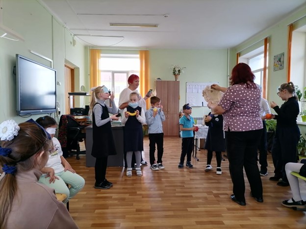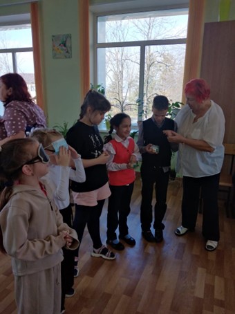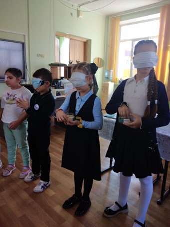 Кроме того, учащиеся вместе с незрячими ребятами, надев на глаза маски, поучаствовали в различных конкурсах, где на ощупь, по вкусу, по запаху необходимо было определить вид продукта, его вкус и его использование.