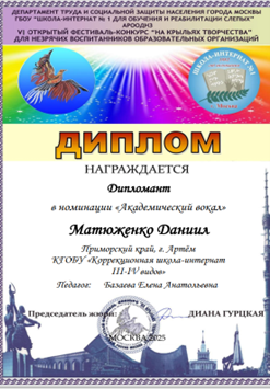 С 29 по 31 октября 2025 года в Москве прошел VI Открытый фестиваль-конкурс «На крыльях творчества» для незрячих воспитанников образовательных организаций.