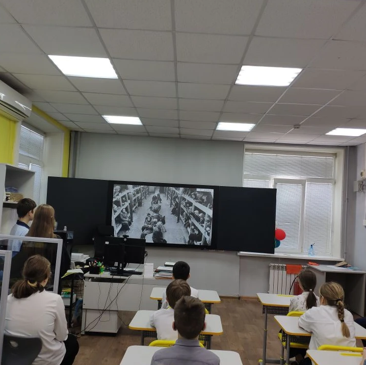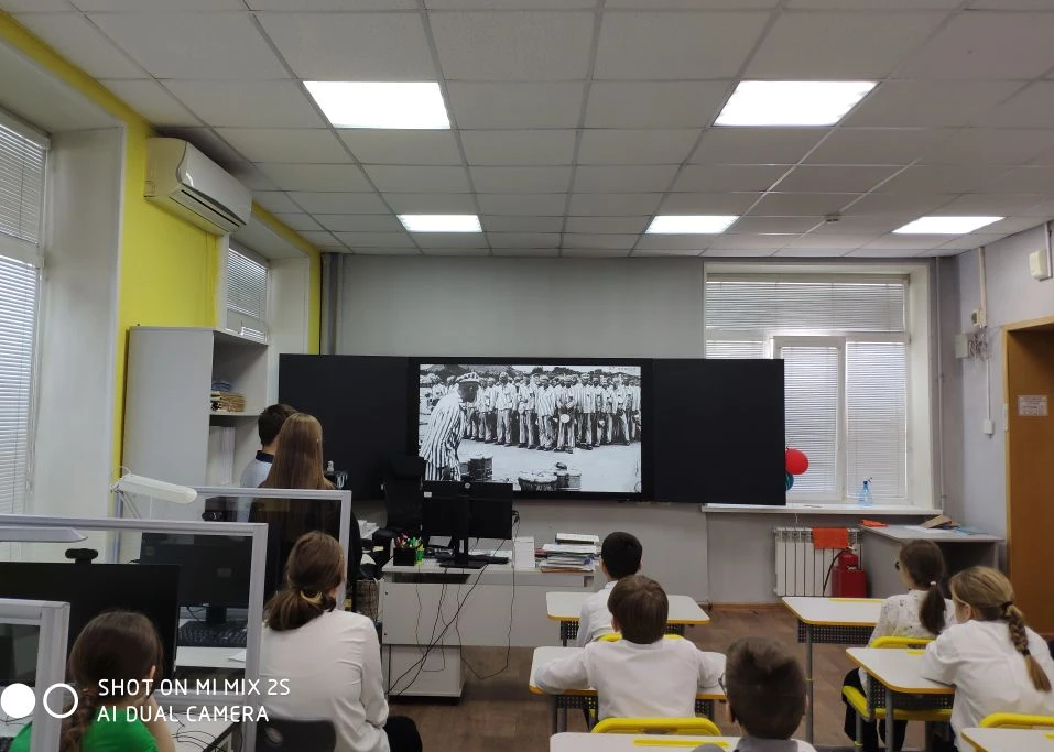 Учащиеся 7 класса «Б» познакомили ребят четвёртых и 5 «Б» классов с такими понятиями как «холокост», «гетто», «геноцид», «семитизм», рассказали о жестокости нацистов в концлагерях, все вместе посмотрели видеофильм «Память поколений», узнали историю еврейского мальчика Юрчика, которого спас русский юноша, находясь с ним в одном концлагере, кто такие Праведники народов мира и другие факты из истории еврейского народа.