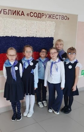 Итогом мастер-класса стал флаг, расположенный на стенде Республики «Содружество», а ученица 1 «А» класса Стефания К. прочитала стихотворение «Русский триколор».