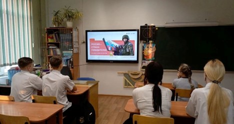 Учащиеся посмотрели видеоролик «Россия – страна победителей», из которого они узнали историю героев Отечества и наград, которые являются высшим мерилом героизма, стойкости, отваги и служения своей Родине.