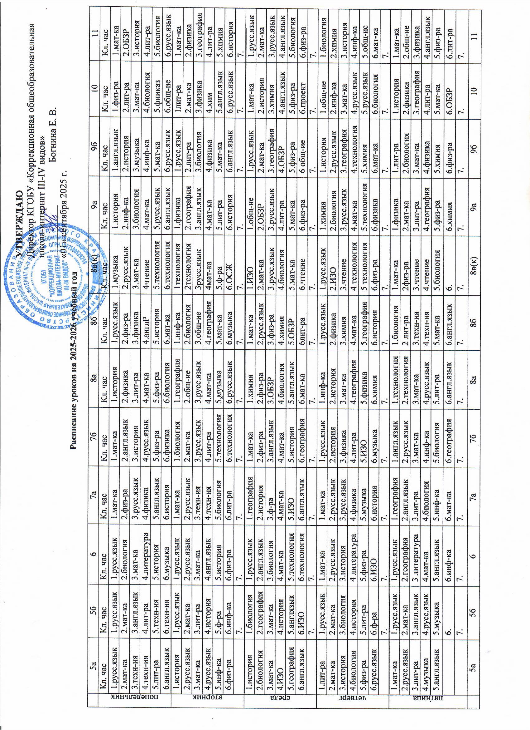 Расписание 5-12 классов